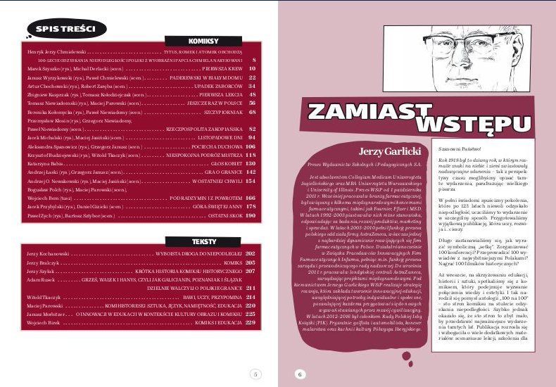 W pełni świadomi spuścizny pokolenia, które po 123 latach niewoli odzyskało niepodległość, uczciliśmy to wydarzenie w szczególny sposób. Przygotowaliśmy wyjątkową publikację, która uczy, rozwija i… cieszy. Na skrzyżowaniu edukacji, historii i sztuki, spotkaliśmy się z komiksem, który podejmuje wyzwanie połączenia wiedzy i estetyki. I tak narodził się pomysł antologii - Jerzy Garlicki, prezes WSiP.