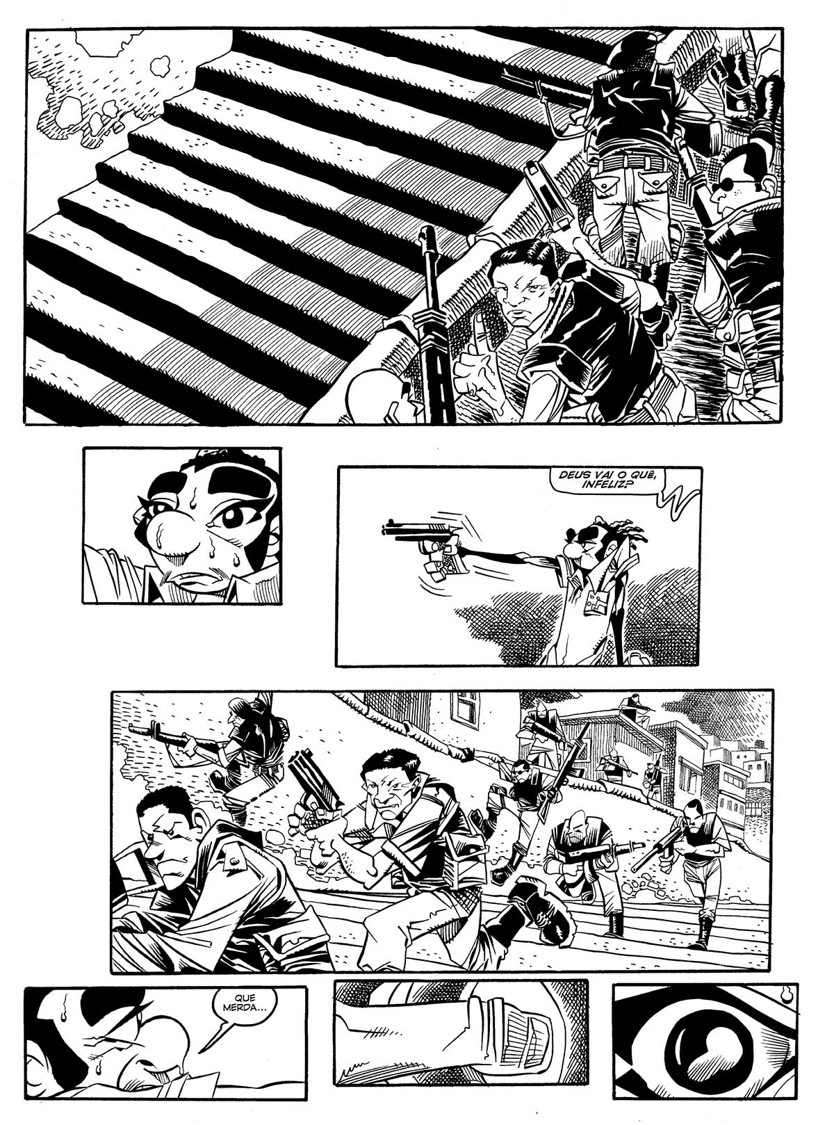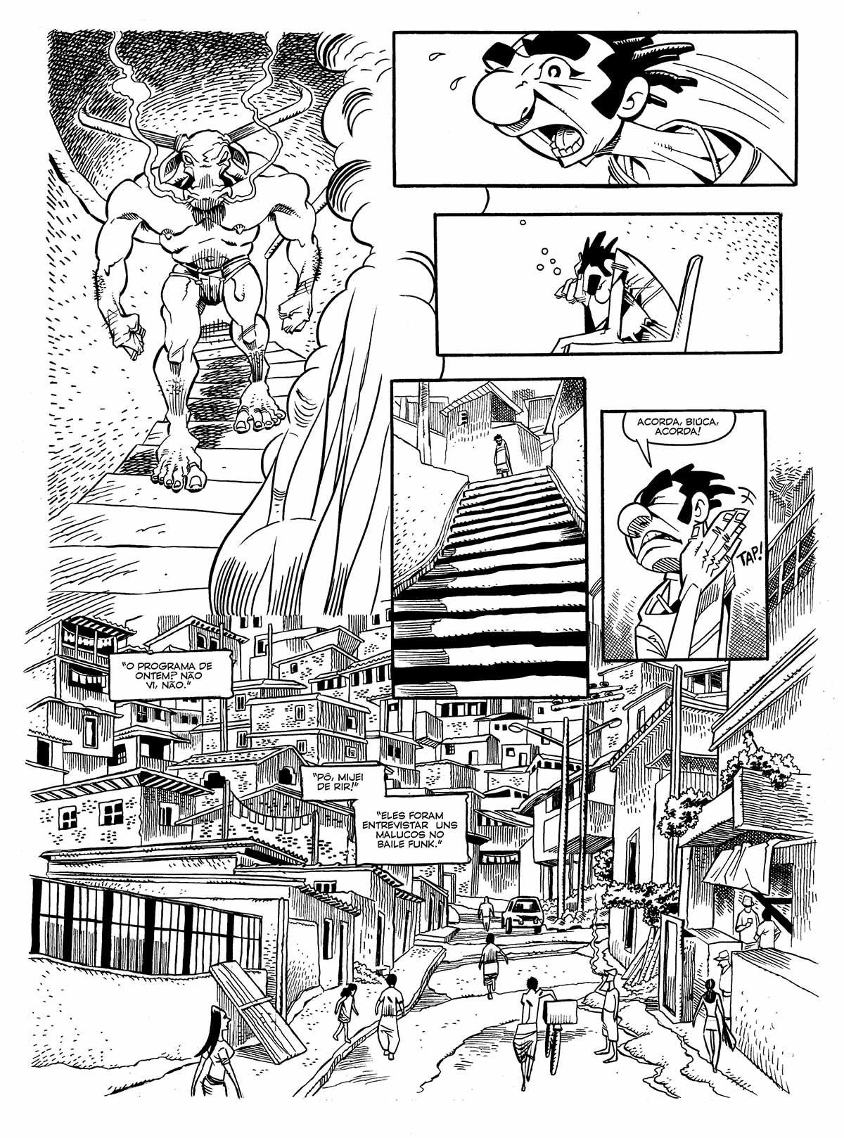 Laudo by oddać klaustrofobiczny, pozbawiony prywatności, gęsty klimat faveli zaserwował nam opowieść zapełnioną 10-12 panelami na stronę, bo w faveli jest za ciasno, zbyt duszno i trudno tam o spokój. Natomiast André Diniz do opowiedzenia historii wykorzystał klucz klasyczny: mitologię i Szekspira!
