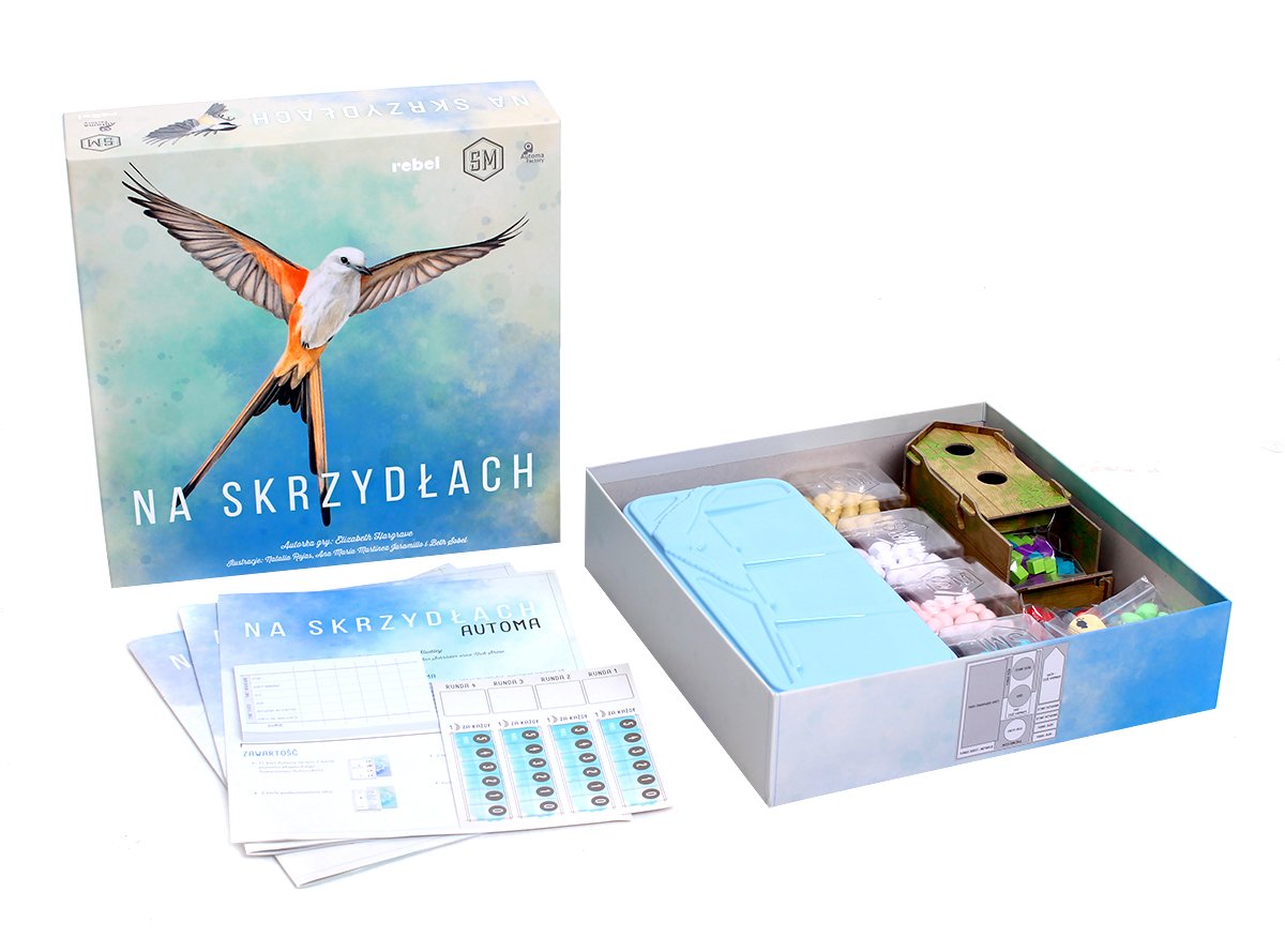 Fani przyrody i ptaków będą mieć swoją własną karciankę. Mowa o grze Na skrzydłach (Boardgamegeek: 8,4/10), w której gracze będą rozwijać własne rezerwaty będące ostoją dla wielu różnorodnych gatunków ptactwa. Według zapowiedzi tytuł ma wyróżniać się wysoką estetyką wykonania i dopracowaniem poszczególnych elementów. W pudełku znajdziemy wieżę na kości w kształcie ptasiego karmnika, figurki jajek, specjalną tackę na karty, a także – a może przede wszystkim – karty ptaków ozdobione przepięknymi grafikami.